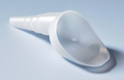Made of antistatic PP, resistant to static charge. With wide mouth for easy access. Tapered neck for use with volumetric flasks in sizes from 10 to 250 ml. Extended metering neck for direct transfer of samples and liquids to flask, ventilation slot between funnel and vessel prevents accumulation of liquid.
