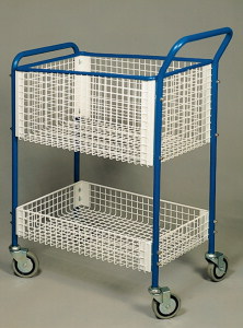 Made of steel tubing and sheet steel. Two baskets, 65 and 24 l volume, corrosion protected and covered with soft plastic.