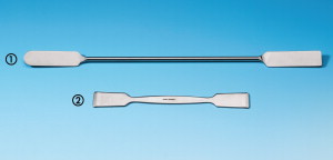 Laboratorijas piederumi  > Metāliskie instrumenti un piederumi  > Špakteles un karotes  > Dubultās špateles, šauras