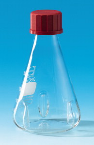 Izgatavotas no Duran ®. Ar skrūvējamiem vāciņiem, kas izgatavoti no PBT un PTFE pārklājumu blīves. Īpaši lieliska audzēšanai S. cerevisiae audzēšanai (neaizvērt vāciņu cieši). Uzmanību: Nav autoklējamas ar cieši aizvērtu vāciņu!