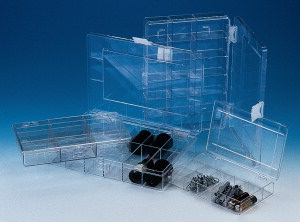 Izgatavots no caurspīdīga PS. Ar dažāda izmēra nodalījumiem.