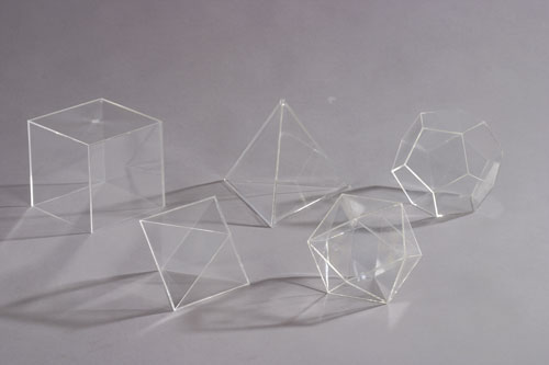 Komplekts no pieciem daudzstūru priekšmetiem.