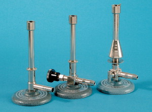 3. Laboratorijas gāzes degļi ar celtni un zemo liesmu.