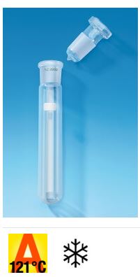 Laboratorijas trauki  > Stikla laboratorijas trauki  > Mēģenes, kivetes  > Mēģenes ar korķiem ar slīpējumu