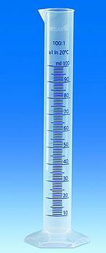 Laboratorijas trauki  > Plastmasas trauki  > Mērcilindri  > Mērcilindrs PP, ar zil. Ied. DIN 12681 / ISO 6706.