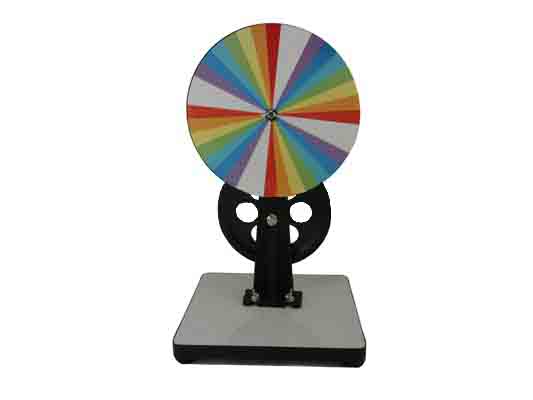 Disc diameter 23cm, stand with manual handle which can rotate the disc in quick speed, to show that different color mixing into white color.