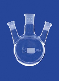Laboratorijas trauki  > Stikla laboratorijas trauki  > Kolbas un piederumi  > Trīskaklu kolba ar slīpējumu